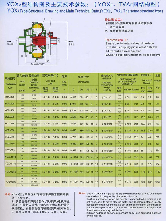說明:YOXA型為單腔型外輪驅動帶彈性套柱銷聯軸器,其特點為: